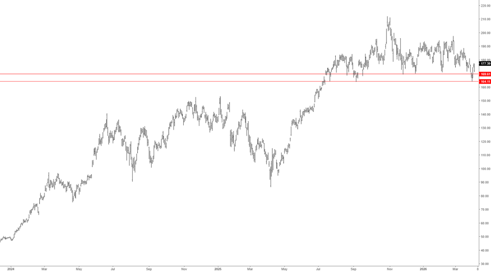 Non vengono poi considerati i segnali negativi provenienti dal settore del Private Debt, con vari fondi che hanno limitato i riscatti: gli investitori tendono a vendere gli altri asset per compensare questo problema come si è visto dal crollo dei metalli preziosi di inizio anno. Non vengono considerati i segnali di rallentamento della congiuntura e di aumento delle pressioni inflazionistiche e i principali titoli di Wall Street come NVIDIA (qui in basso) e JPMorgan non mostrano ancora segnali di inversione del trend rialzista di lungo termine.