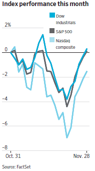 Gli indici americani hanno chiuso il mese di novembre praticamente invariati, ma con guadagni del 16% da inizio anno (grafico in basso).