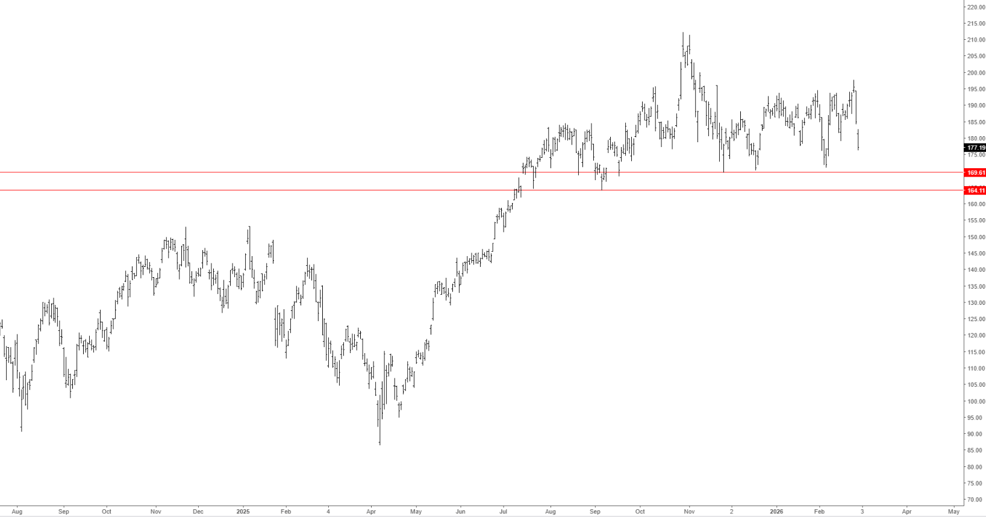 La scorsa settimana gli indici americani hanno chiuso in ribasso, con il Nasdaq che ha perso un punto percentuale, seguendo la discesa di NVIDIA, che ha chiuso a 177 dollari nonostante una trimestrale migliore delle attese (grafico in basso). Il titolo rimane comunque sopra l’area di supporto.