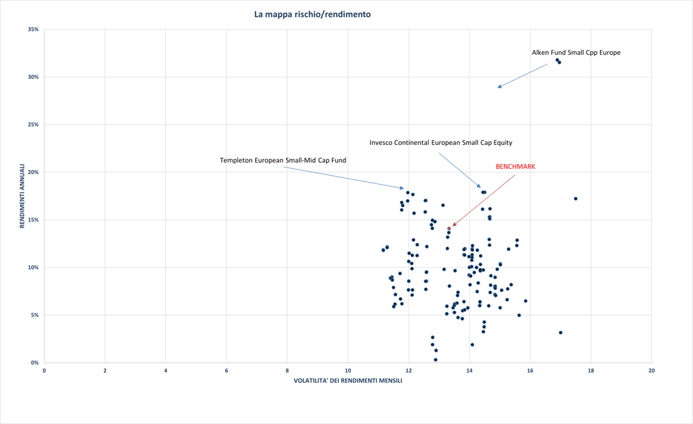 La performance media annua della classe R nel corso dei tre anni terminati a fine settembre è stata del 31,8%, la migliore della categoria degli azionari Europa Small Cap. Hanno portato ottimi risultati scelte di allocazione sui titoli del settore difesa. La volatilità dei rendimenti mensili è stata però superiore alla media e tra le più alte della categoria.