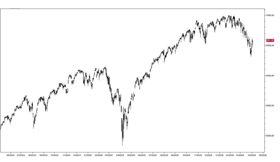 Non si nota al momento alcun peggioramento del sentiment degli investitori visto che le vendite sono state sinora ordinate e sembra ancora prevalere l'idea di comprare le correzioni, però l'indice SP500 è sceso sotto al primo importante supporto situato a quota 6550 (grafico in basso) e il recupero della scorsa settimana non migliora la situazione tecnica.
